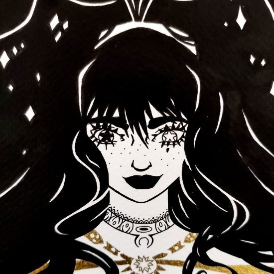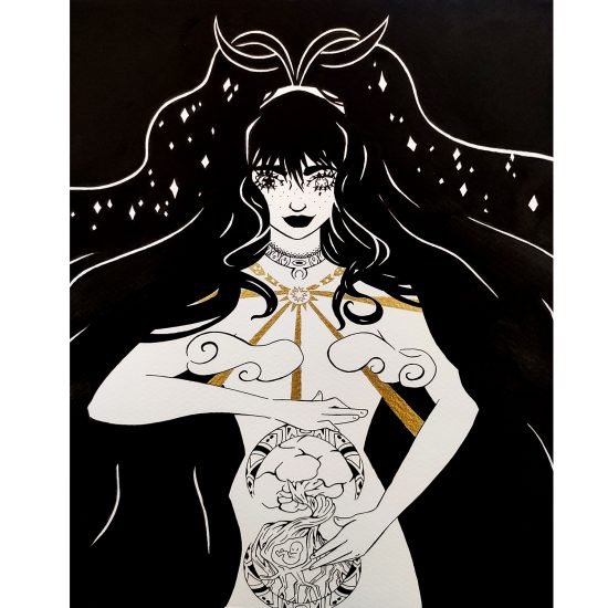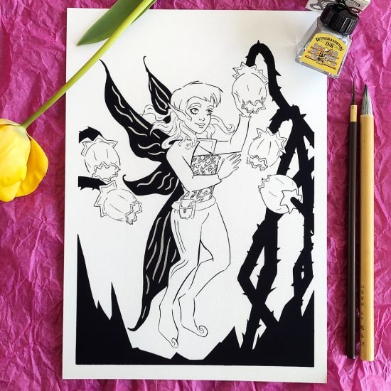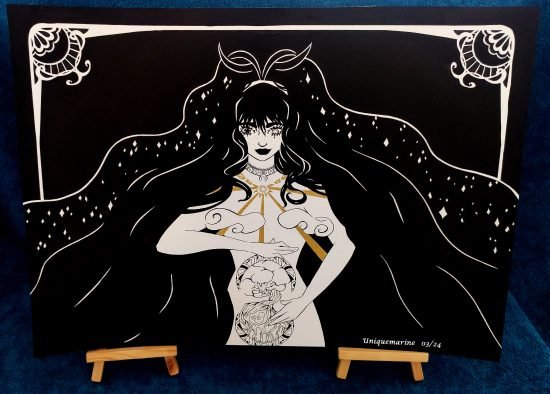 Ce portrait mêlant fantasy et douceur sera parfait en décoration pour votre intérieure. Il a été réalisé avec de l’encre et un pinceau japonais.