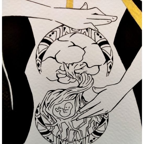 ? Cette illustration a été réalisée avec de l’encre noire au pinceau japonais.