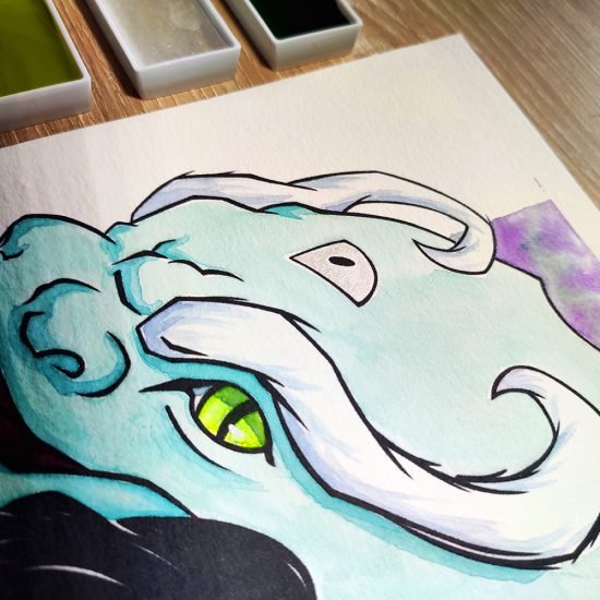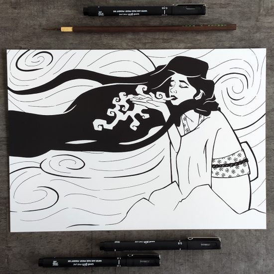 L’original de cette illustration, en vente sur mon site (uniquemarine.fr), a été peint à l’encre de chine et feutre alcool (bleu).