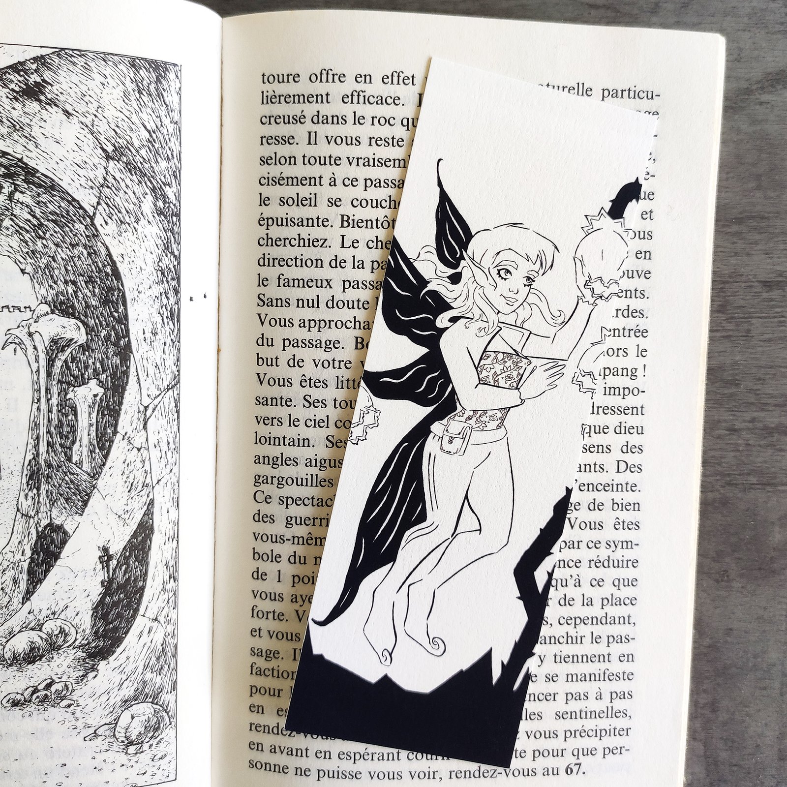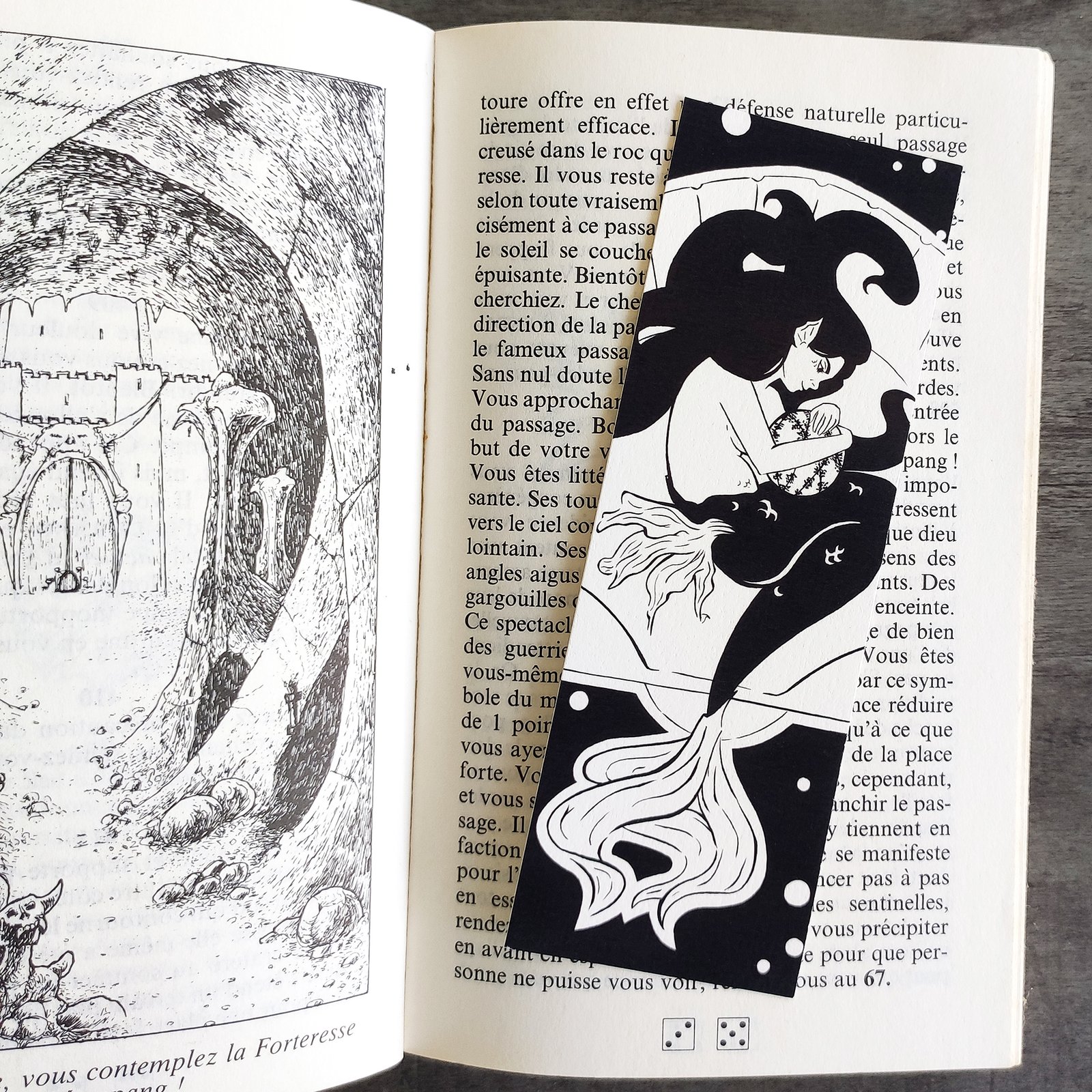 ? Impression de marque-pages réalisée à partir de mes illustrations. L’impression est en noir&blanc.