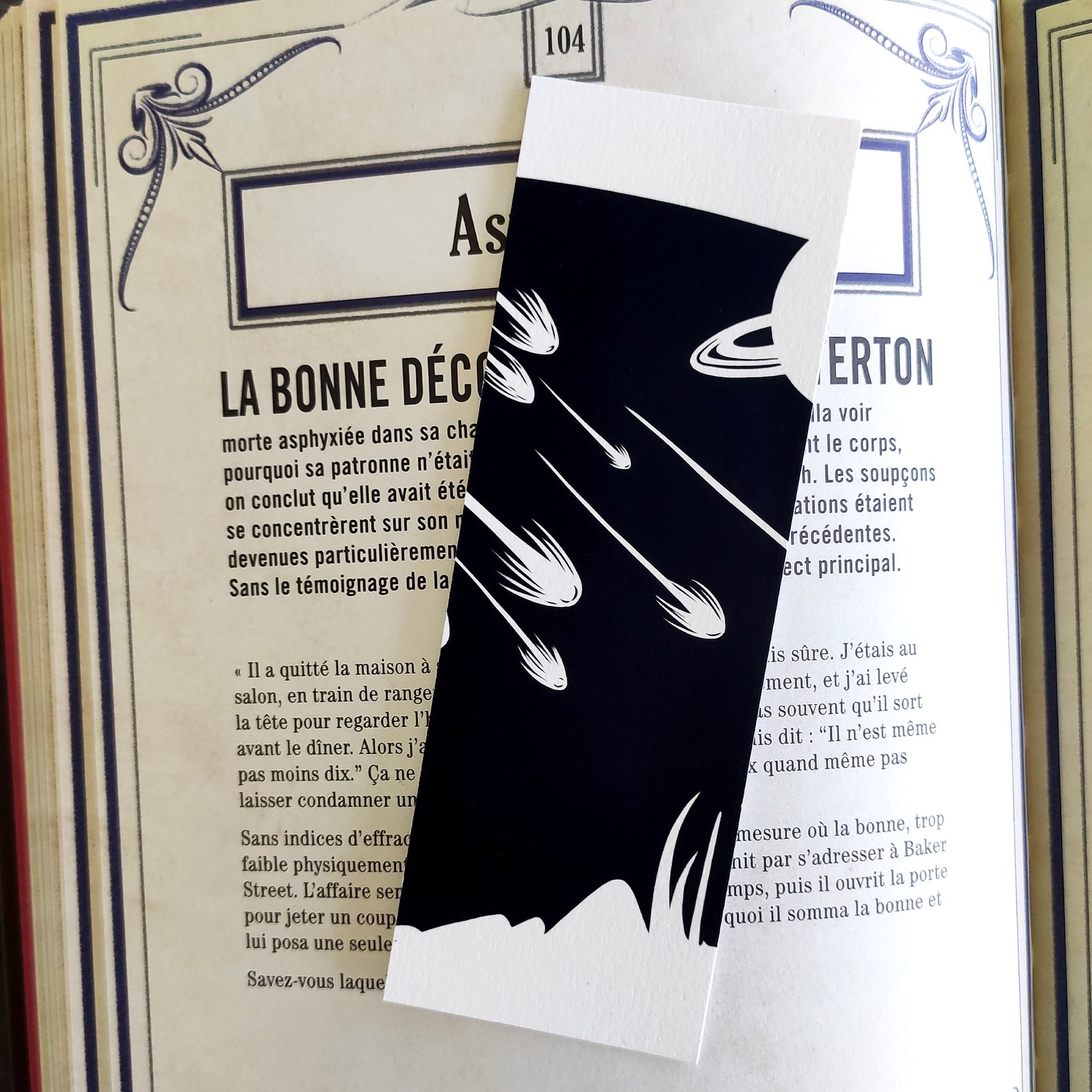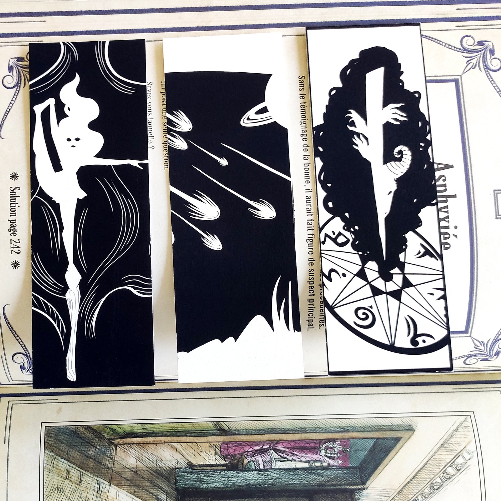 ? Impression de marque-pages réalisée à partir de mes illustrations. L’impression est en noir&blanc.