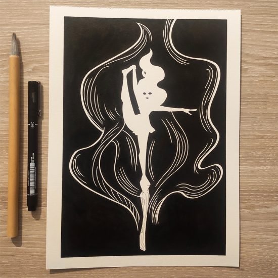 ? Cette illustration a été réalisée avec de l’encre noire au pinceau japonais.