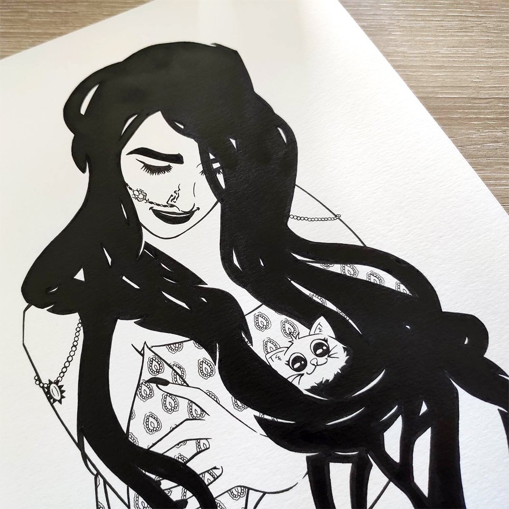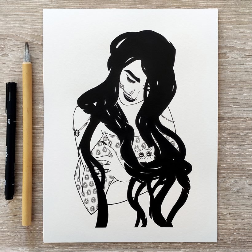 ? Cette illustration a été réalisée avec de l’encre noire au pinceau japonais.