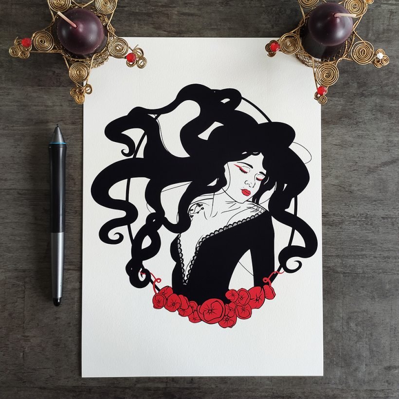 Cette illustration tout en délicatesse sera parfaite en décoration pour votre intérieure avec un papier de haute qualité mettant en valeur les noirs et profonds et les rouges vifs.
