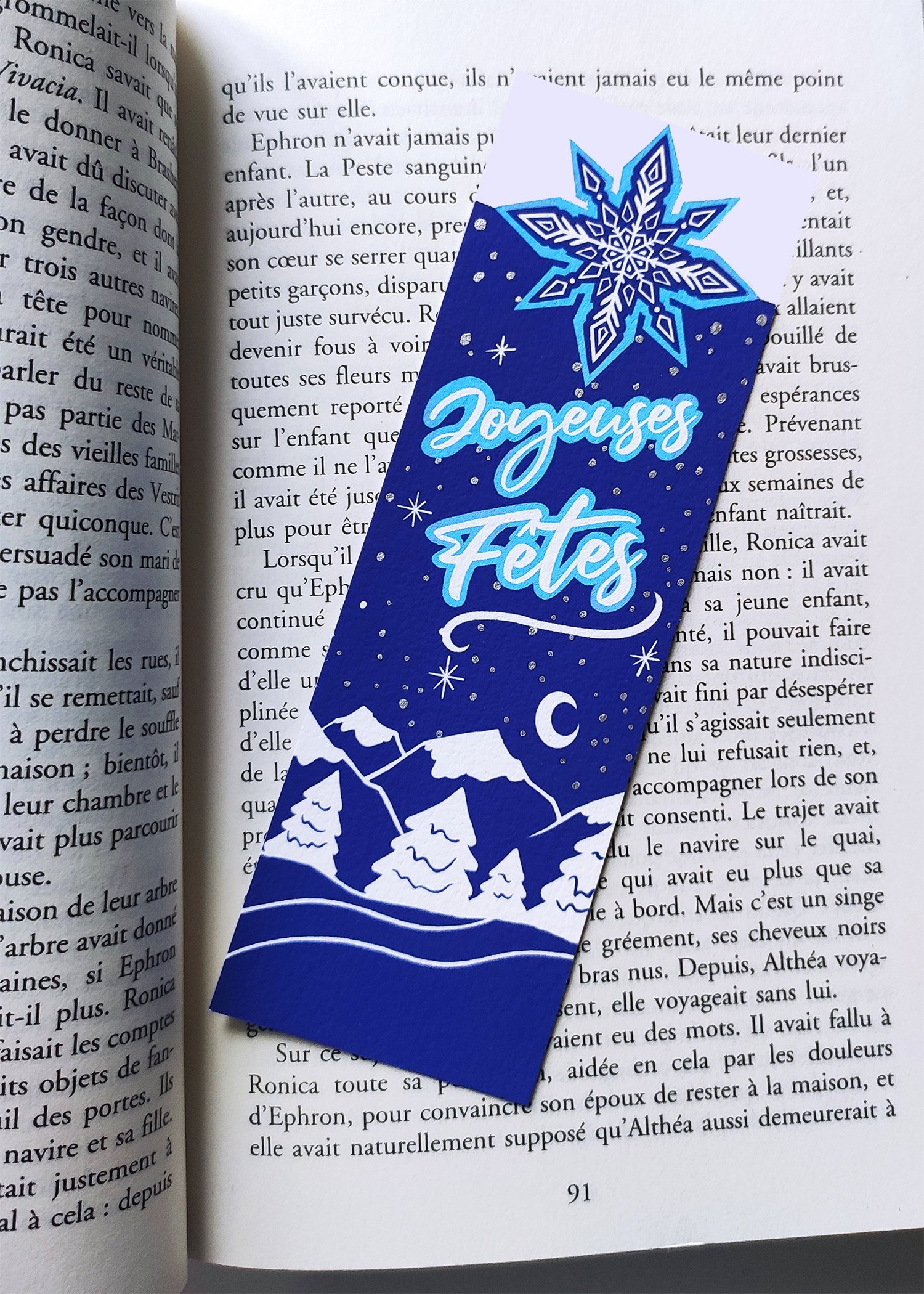 Attention! Pour ce marque-page, veuillez indiquer quelle version vous souhaitez : flocon découpé ou intacte. La découpe est faite à la main, veuillez noter qu’il peut y avoir quelques imperfections.